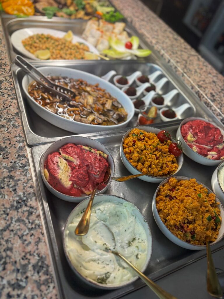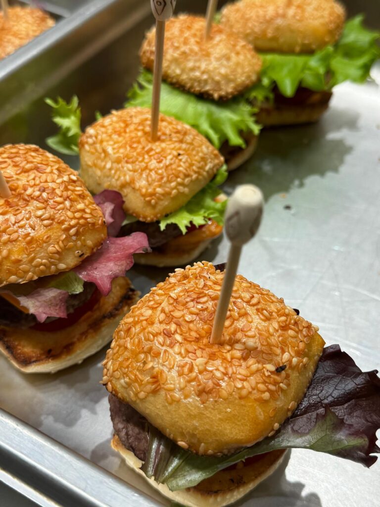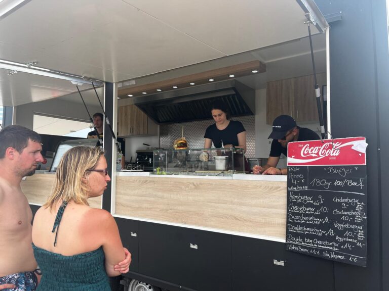 Genießen Sie internationale Favoriten wie Burger, Hot Dogs und mediterrane Köstlichkeiten.